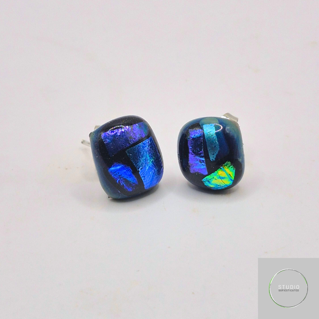 Sterling silver 925 oorsteker ambachtelijk gesmolten glas circa 10mm