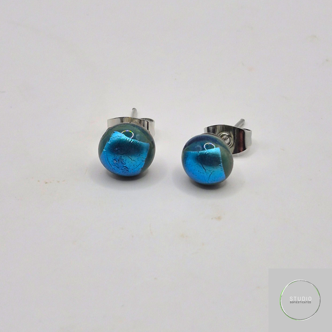 Sterling silver 925 oorsteker ambachtelijk gesmolten glas circa 7mm