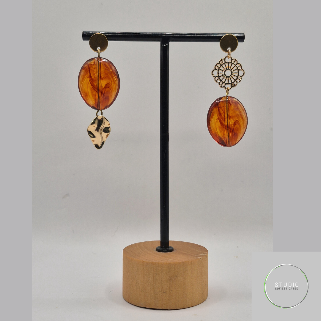 Kraal in resin, met 'draden van donkerbruine hars voor het gemarmerde effect. Statement ten top, helemaal najaar!